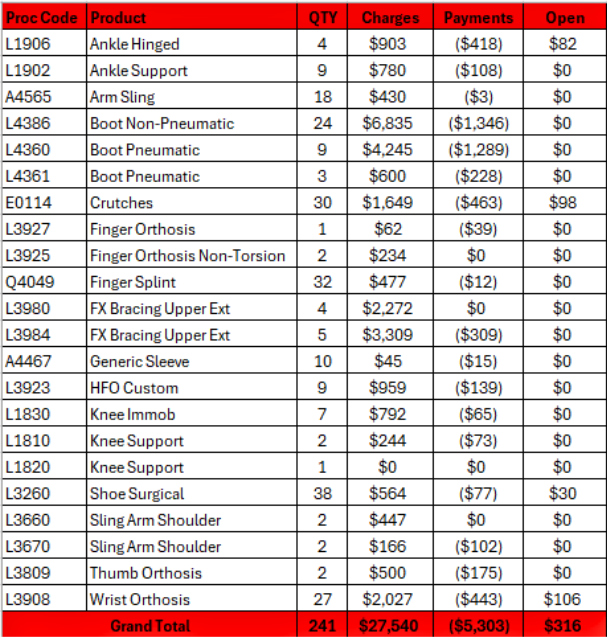 It utilizes frequently charted HCPCS codes and below-market fee schedule to promote patient acceptance and maintain a competitive edge. Net revenue is adjusted for contractual limitations, reduced reimbursements, uncollected patient A/R, and cost of good.