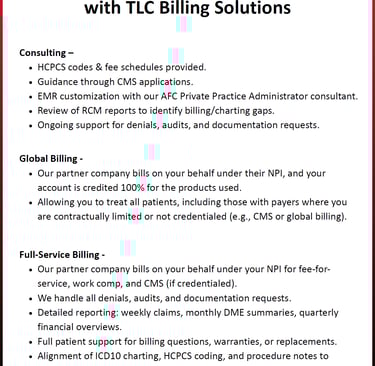 We customize your EMR with accurate HCPCS codes, fee schedules, and self-pay rates with the help of our AFC EMR Specialists.